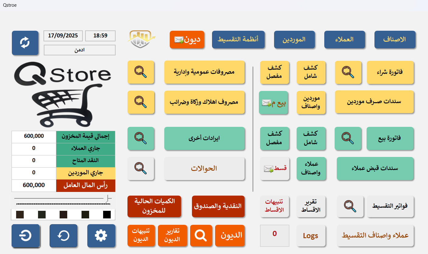 النظام يحتاج إلى جهاز كمبيوتر مكتبي أو لابتوب يجب أن يكون مثبت عليه برنامج الاوفيس لأننا سنقوم بتصميم البرنامج بواسطة الاكسس إمكانيات الجهاز تكون 2 جيجا رام على الاقل ومش شرط يكون في مساحه كبيره على الهارد وأيضا مش شرط يكون كارت الشاشة مرتفع تثبيت النظام سهل وأنا أرسل مع البرنامج فيديو لضبط بعض الاعدادات