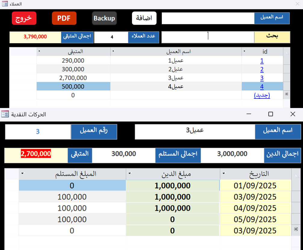 بخصوص فكرة البرامج التي أصممها فتتكون أغلب البرامج التي أصممها من الاتي 1 نماذج لأدخال البيانات تتميز بالسهولة والوضوح والشكل المنسق 2 نماذج بحث وتعديل على البيانات يتم تصميمها بشكل إحترافي لضمان الفاعلية في البحث حيث تتيح ليك البحث بكل أنواع الاعمده والحقول 3 نماذج فلترة متقدمه لأخراج تقارير شاملة ومتنوعه واحترافية يتم تصديرها ل Excel أو PDF 4 نظام صلاحيات يمكن من خلاله اضافة أكثر من مستخدم مع تحديد صلاحيات الاضافة والتعديل والحذف لكل منهم 5 واجهه برنامج متميزة وجذابة بدرجات لونية عصرية أو أي درجات لونية حضرتك تختاريها 6 الاهتمام بتجربة المستخدم بحيث يجمع البرنامج بين السهولة والاحترافية في تنفيذ العمليات 7 تصميم لوحة إستعراض للبيانات تتميز بالدقة والشمولية وأفضل ما يميزني بفضل الله هو الخبرات المتراكمة والتي تكونت على مدار سنوات من العمل في تصميم الانظمة الادارية لمختلف المجالات