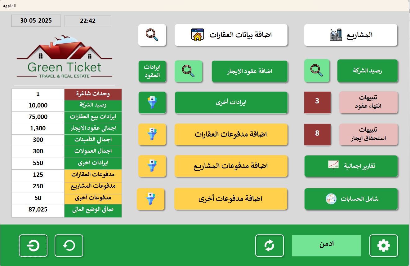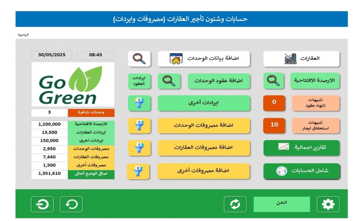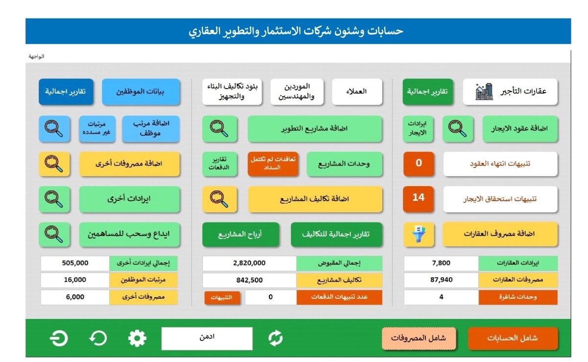 حسابات وشئون العقارات (ايجارات بالعقود) ومصروفات وايرادات