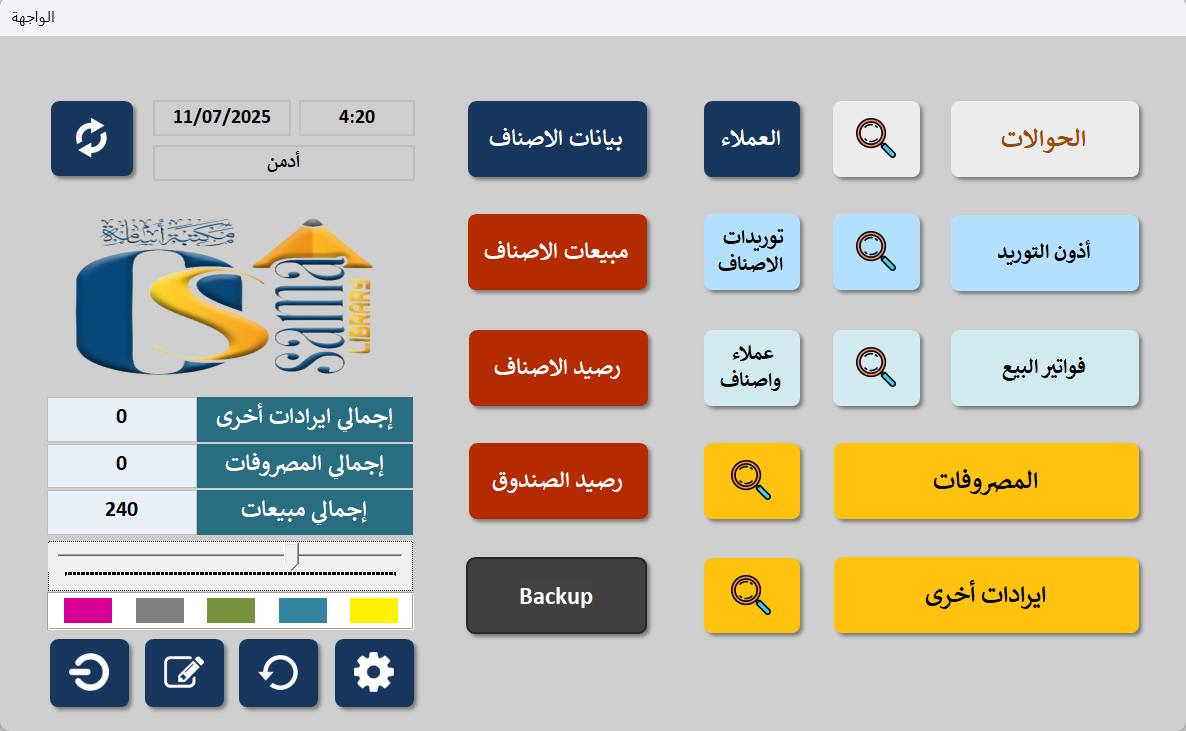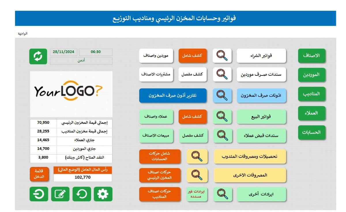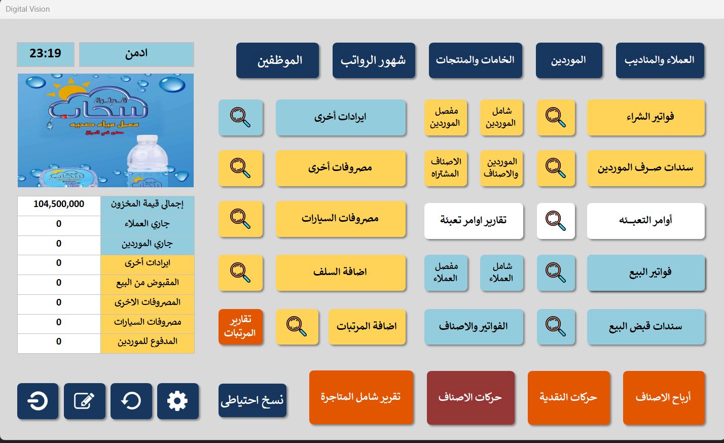 برنامج أذونات توريد ومبيعات وكشوفات حساب المبيعات والاصناف مصروفات وايرادات