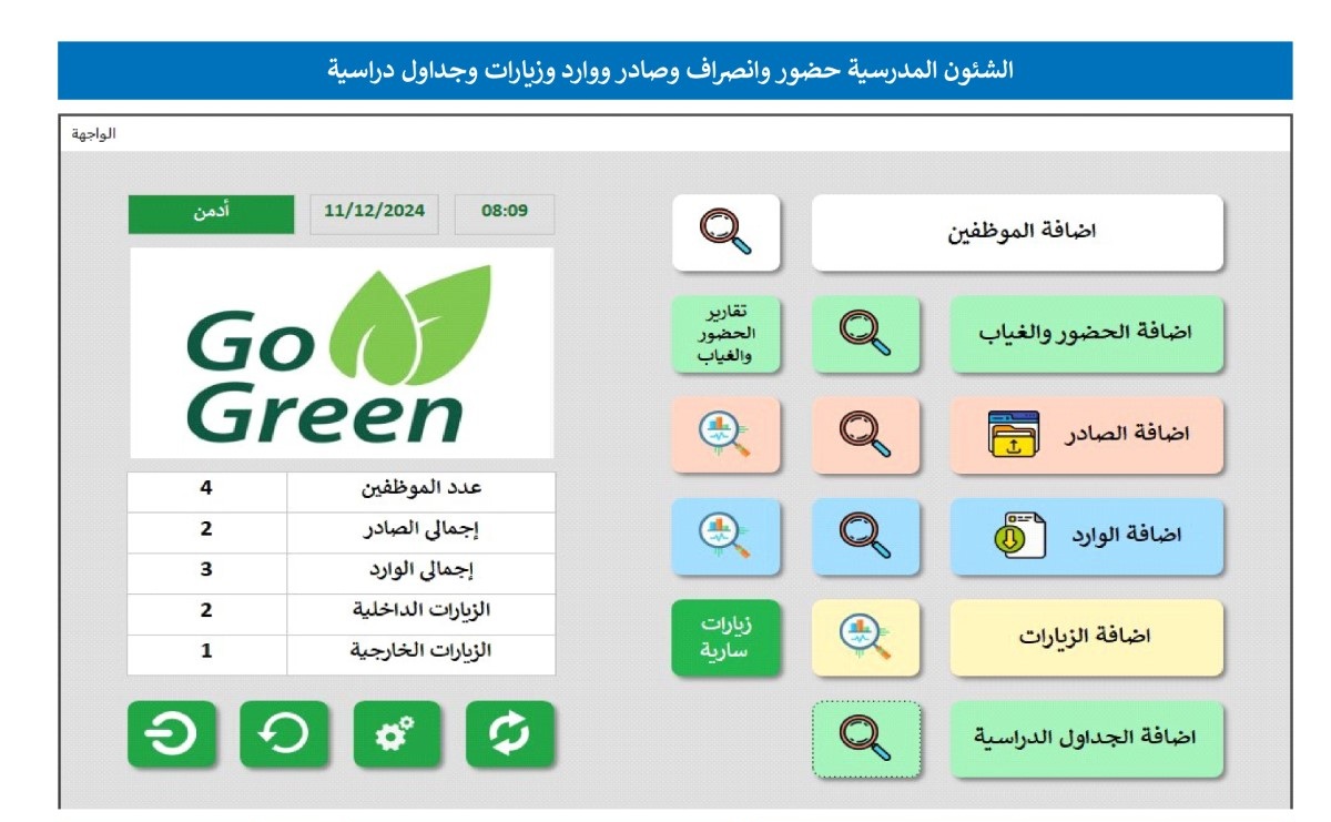الشئون المدرسية حضور وانصراف وصادر ووارد