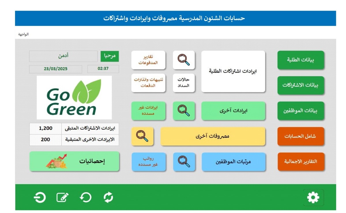حسابات الشئون المدرسية مصروفات وايرادات واشتراكات
