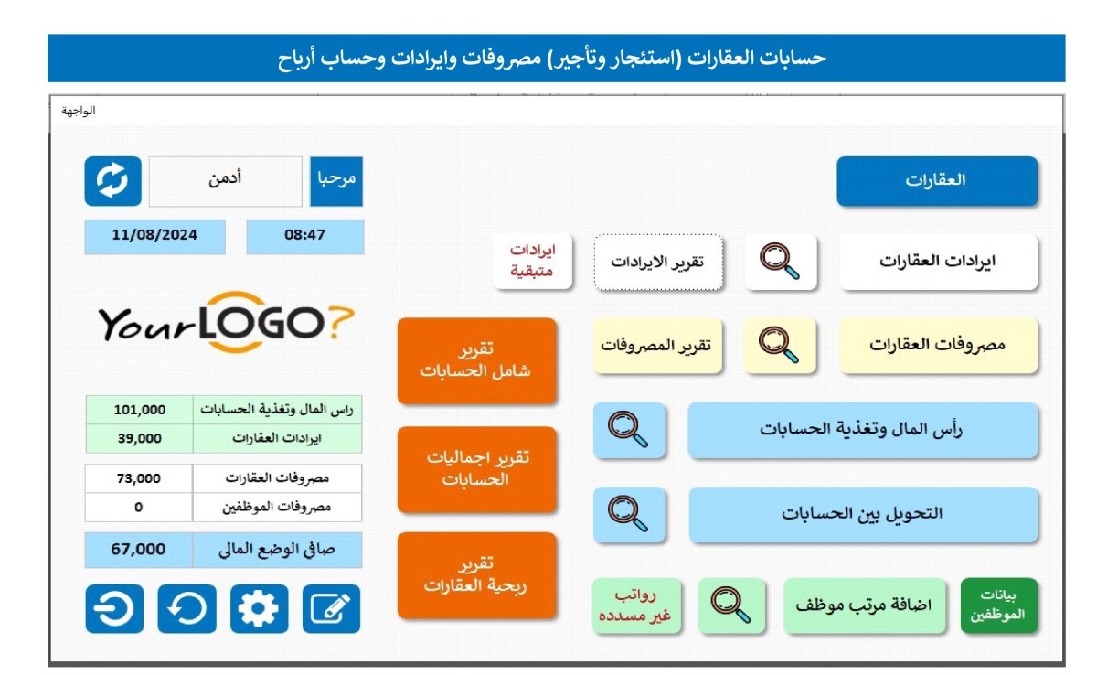برنامج حسابات وشئون العقارات والمجمعات السكنية (ايجارات وبيع بالعقود) ومصروفات وايرادات