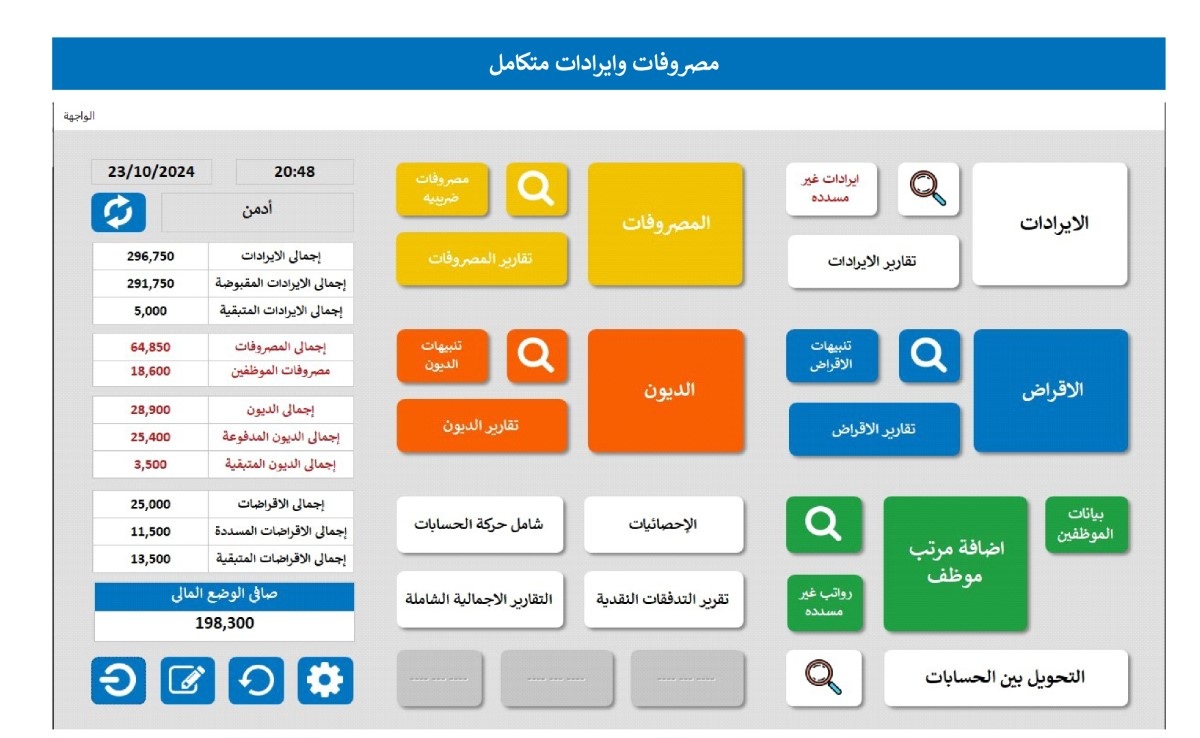 برنامج مكاتب البيع بالجملة والمفرد - كشوفات حساب المبيعات والديون والاصناف مصروفات وايرادات