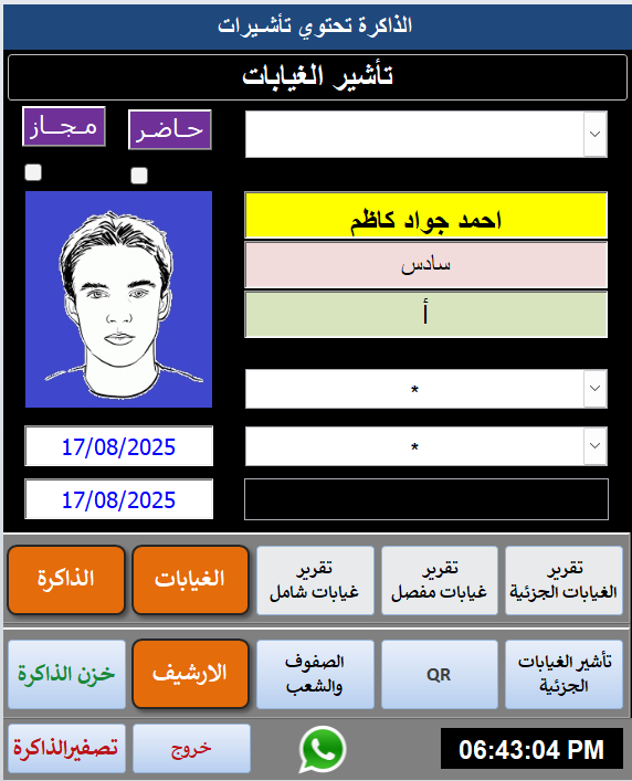 تسجيل الغيابات الكلية والجزئية والاجازات