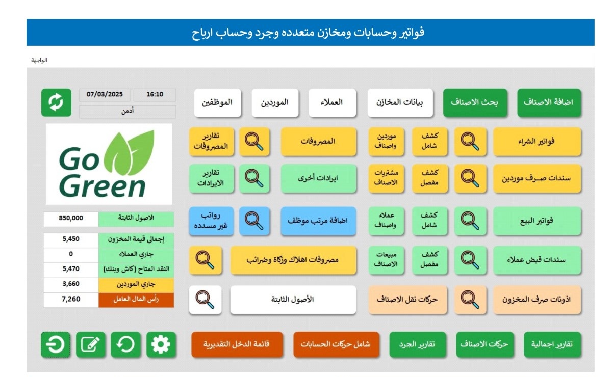 فواتير وحسابات ومخازن متعدده وجرد وحساب ارباح